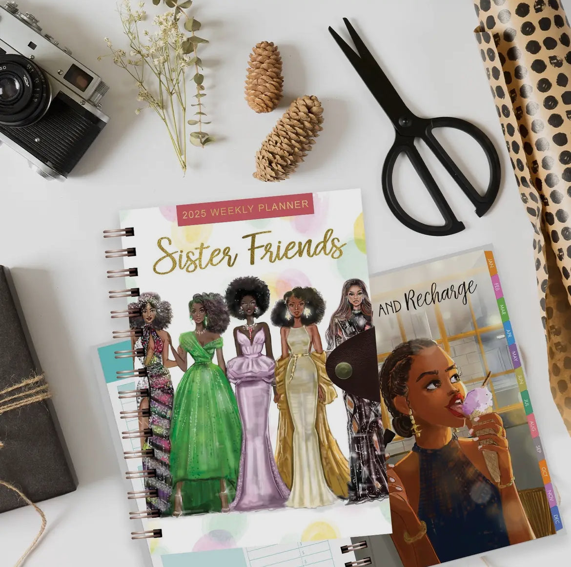 * Size: 6" x 8.75" * 2025 weekly planner * Colorful monthly tab dividers * Budget/Note sections every month * 2025-2026 mini view spread