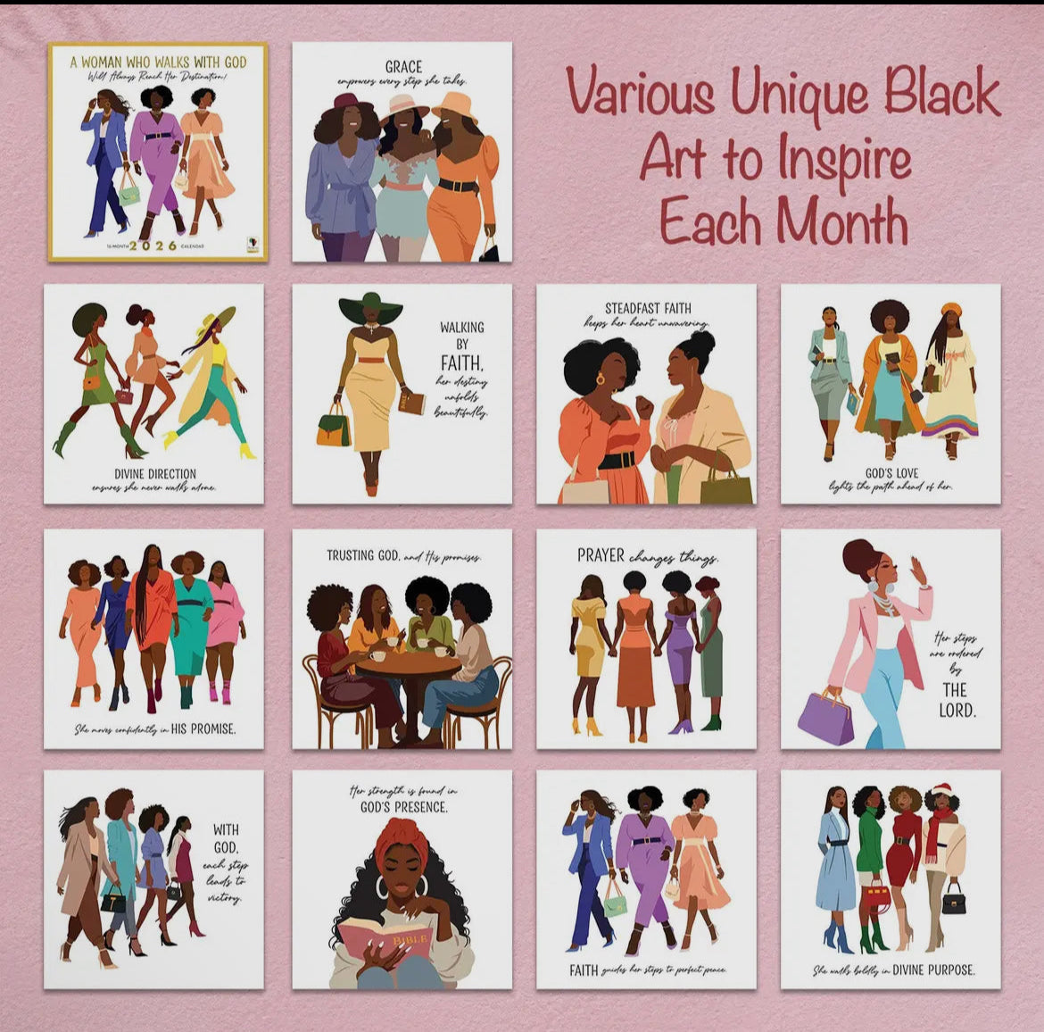 The 2026 Girlfriends Wall Calendar. Created by Cidne Wallace, this calendar is more than just a tool to track days. It’s a celebration of the beauty, resilience, and contributions of African American women. Each month reveals a distinctive, one-of-a-kind artwork that uplifts and inspires, echoing our mission to bring positive images of African Americans into homes, schools, and offices. This unique calendar stands out, embodying the beauty of the African diaspora and the strength of black culture.
